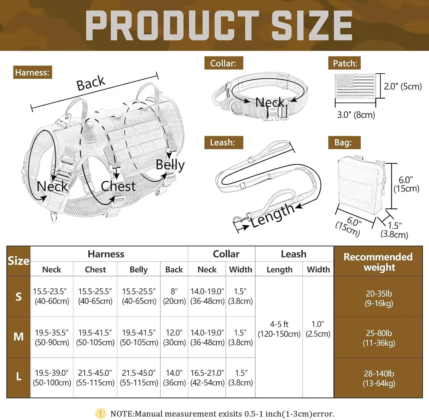 Tactical Dog Harness Set with Bungee Leash, Adjustable for Medium to Large Dogs